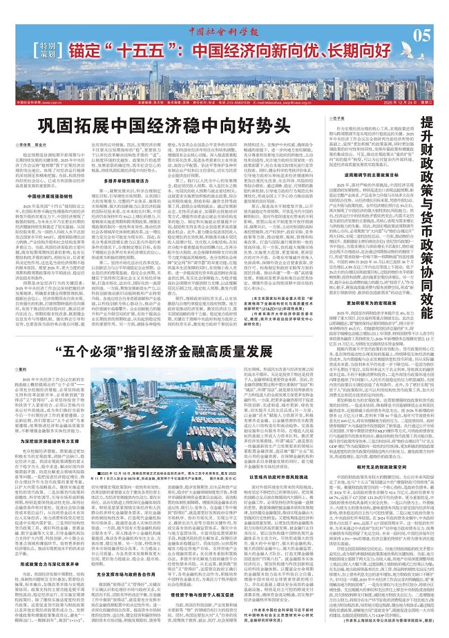 2025年中央经济工作会议在新的实践基础上概括提炼出的“五个必须”——必须充分挖掘经济潜能、必须坚持政策支持和改革创新并举、必须做到既“放得活”又“管得好”、必须坚持投资于物和投资于人紧密结合、必须以苦练内功来应对外部挑战,成为我们做好当前和今后一个时期经济工作的重要遵循。立足新征程,我们需要以“五个必须”为重要遵循,统筹推进经济和金融高质量发展,不断增强金融服务实体经济能力。